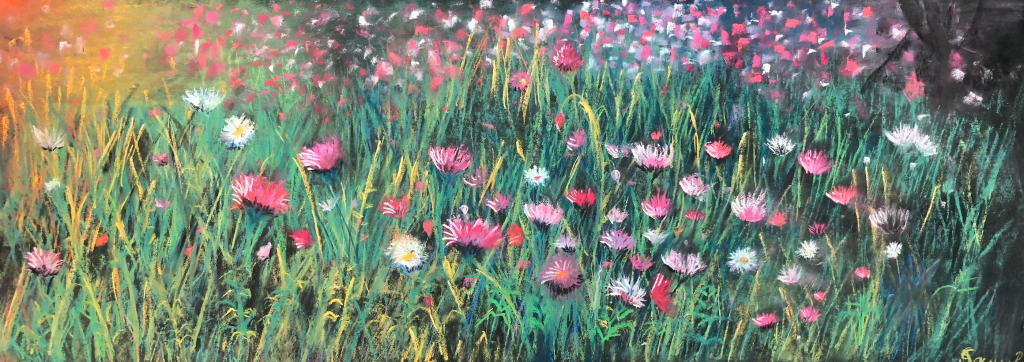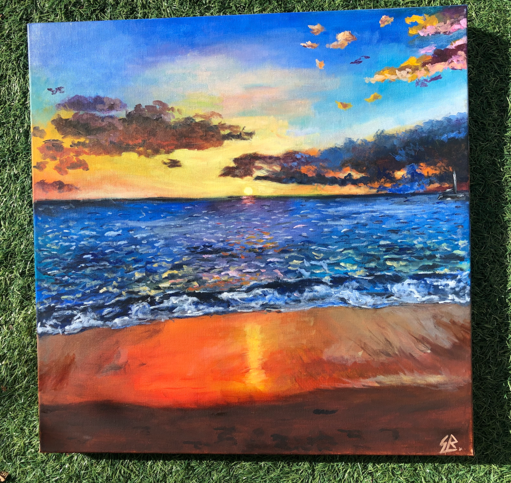 This artwork is one of the most unique ones I have created. It is also one of my first digital artworks (using Procreate). Before creating this, I had an art block and was also feeling restricted with my usual painting style. I wanted to get out of my comfort zone, hence, I asked for a word from my dad, to create an artwork based off of that. This helped me think outside the box, and broaden my skills. Overall, it is one of my favourites.