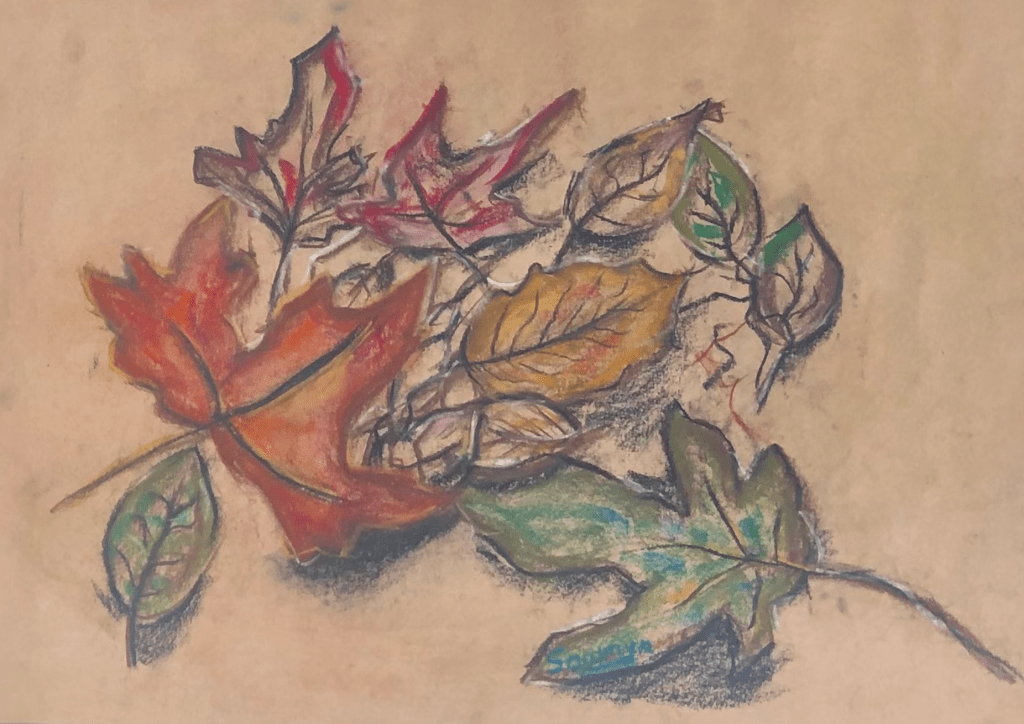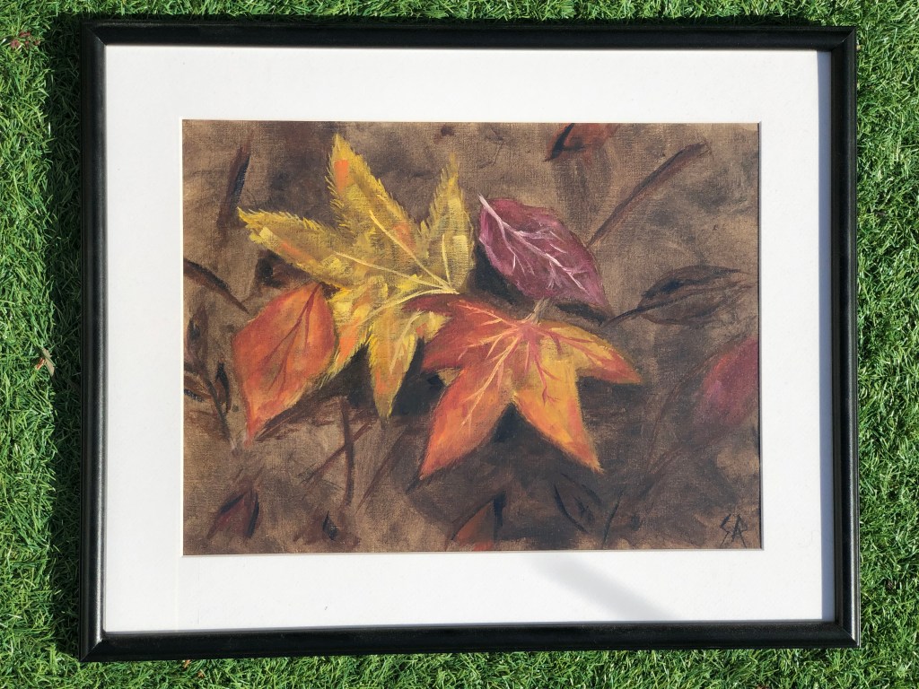 An oil painting of a pile of autumn leaves. I wanted to capture the different environment and vibrant colours of the beautiful fall season. What better way of doing that, other than painting the autumn leaves? All the leaves have a unique shape and are never just one colour. I have done a few of these in different mediums, but this is definitely one of my favourites.